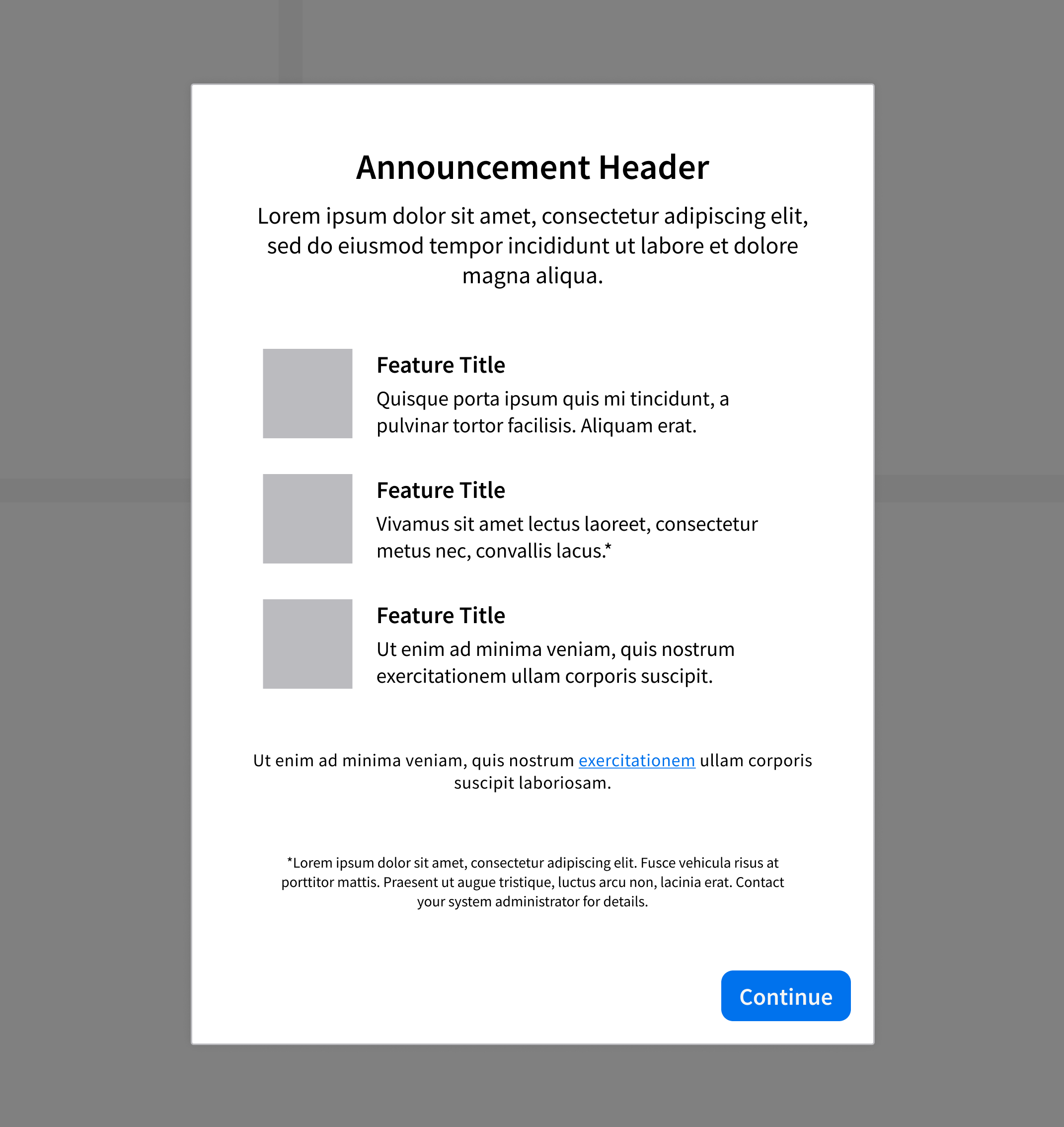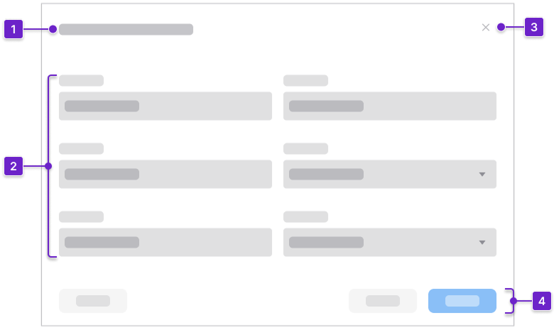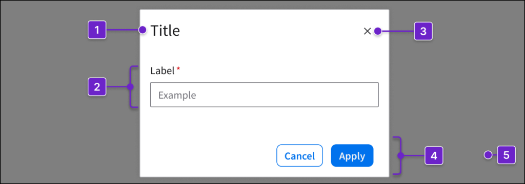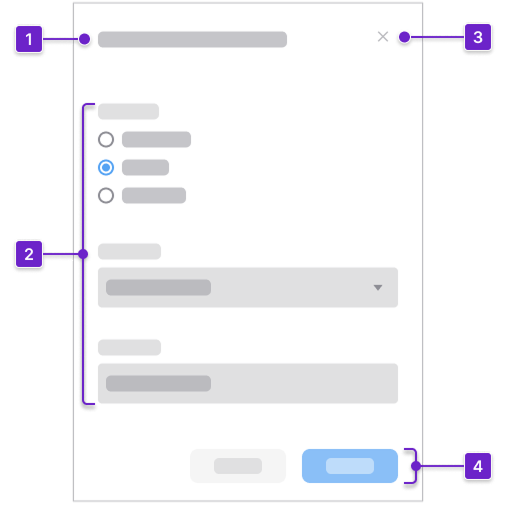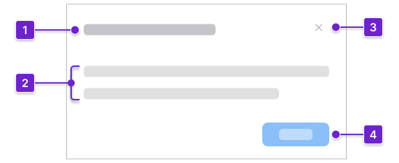 A dialog supports 4 primary use cases. Not every use case applies to both modal dialogs and non-modal dialogs.