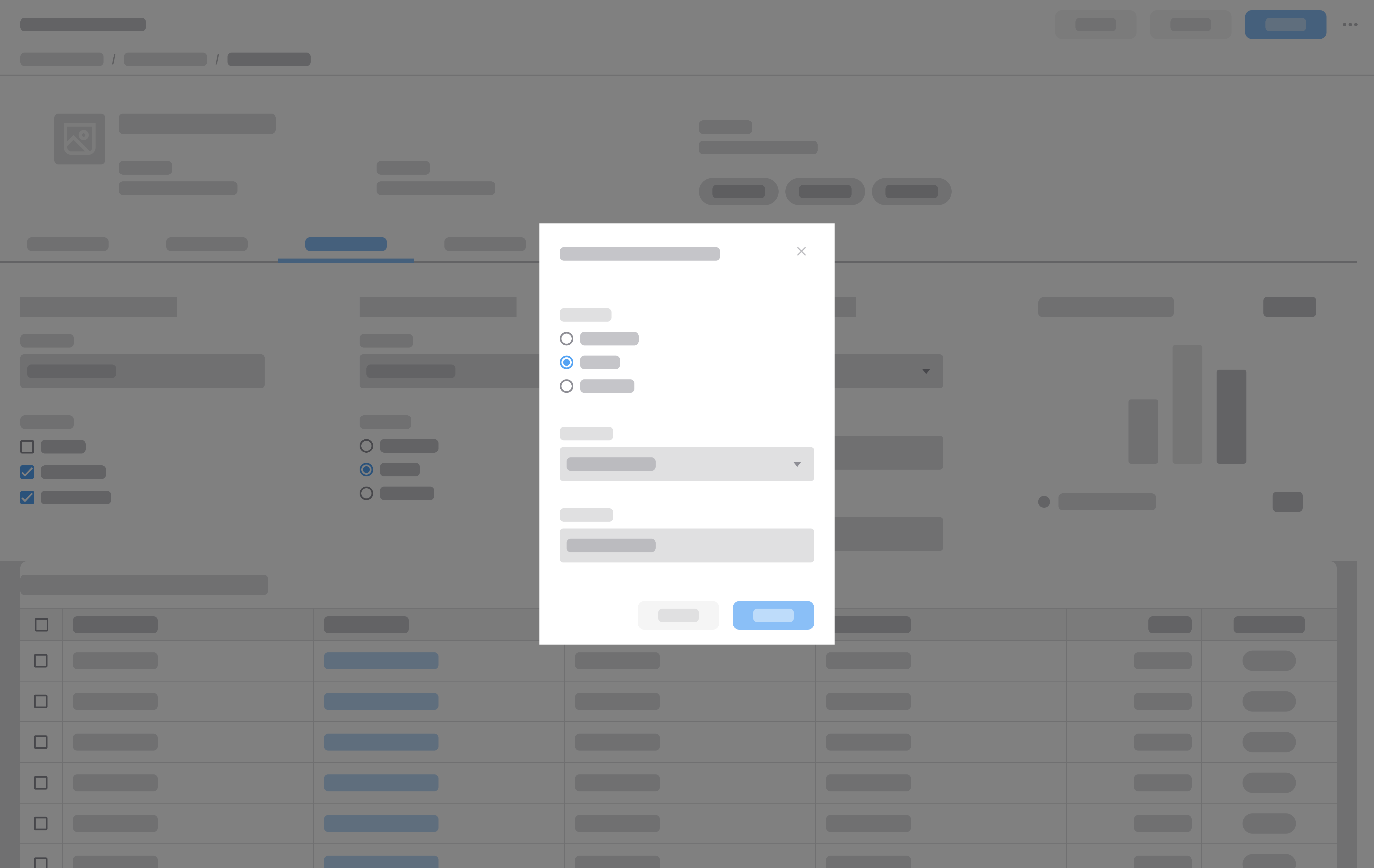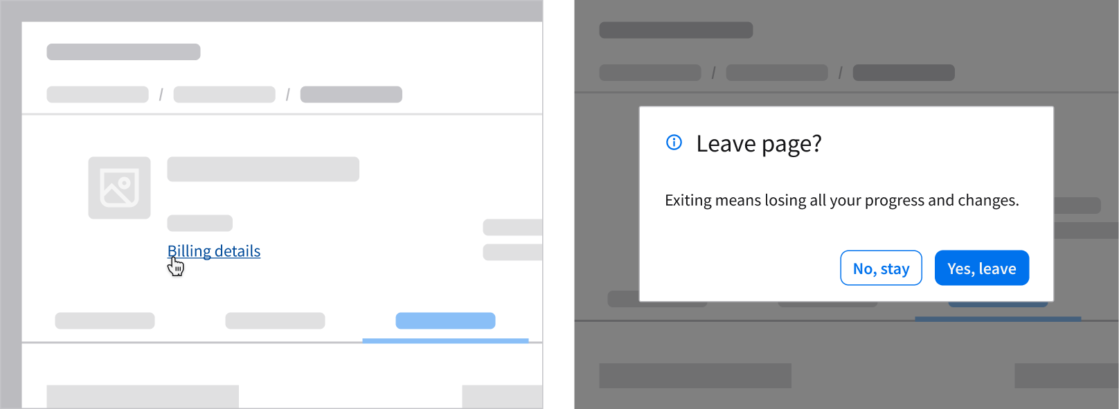 - Avoid tabs, accordions, expandable panels, or similar components that hide large amounts of content. They introduce multiple layers of interaction and can make the dialog feel like a full page. If these components are necessary, use a full page instead.