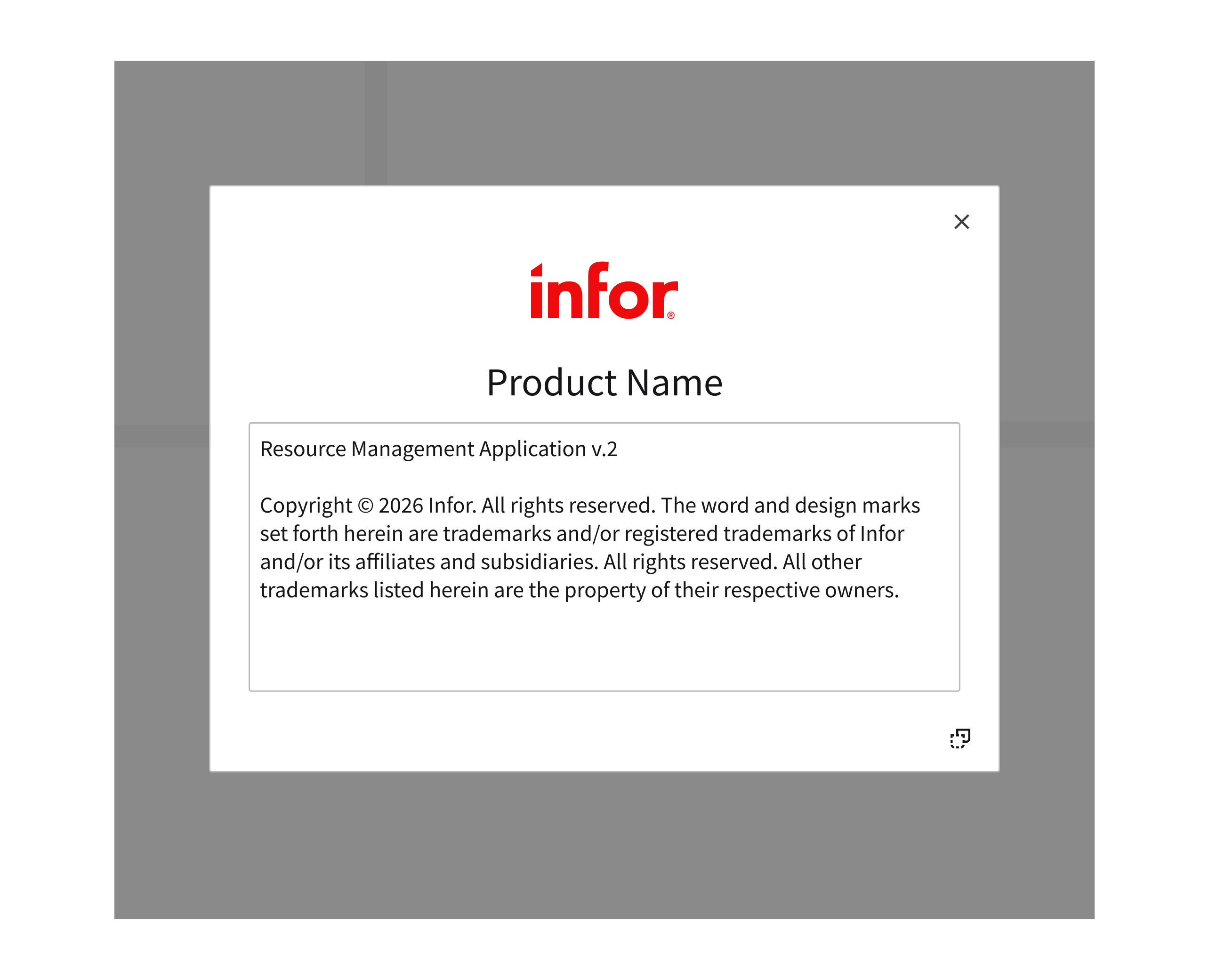 - Utilizes a close button in the top right.