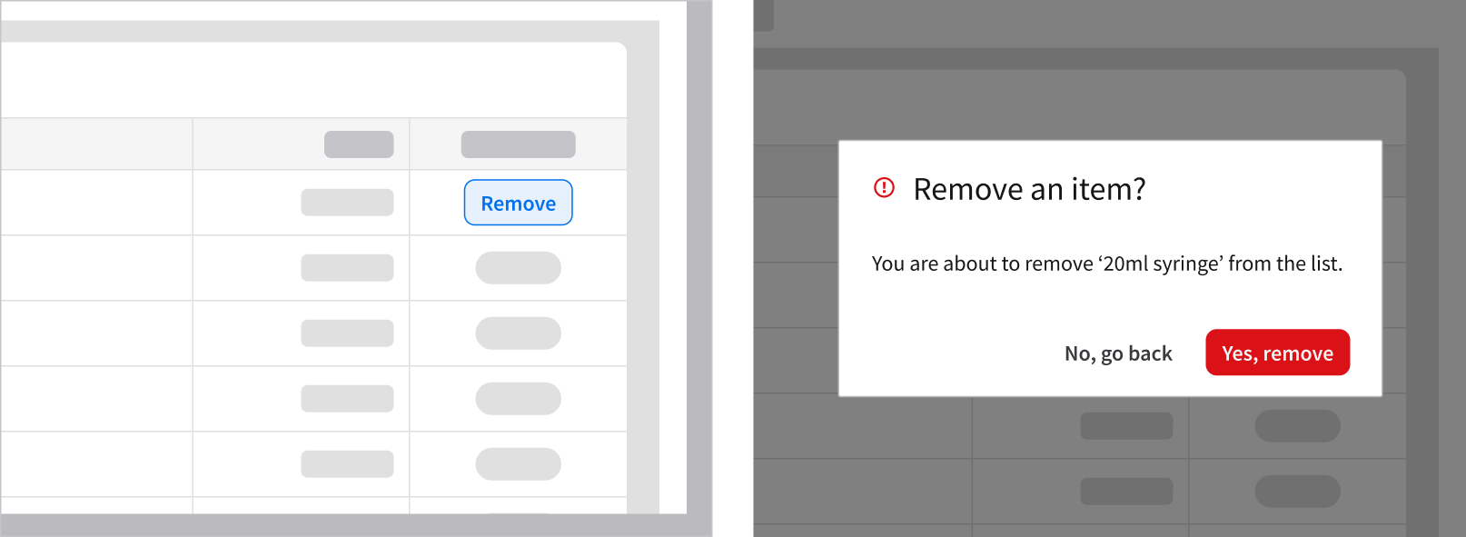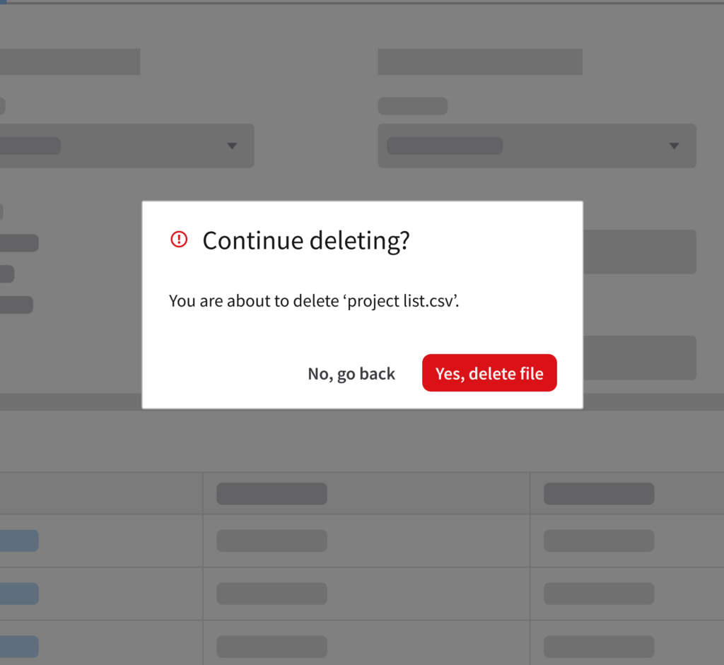 Deleting a record is a destructive action that requires the user’s confirmation. By intentionally interrupting their workflow, it ensures that the user understands the consequences before proceeding. This example is using the message component.