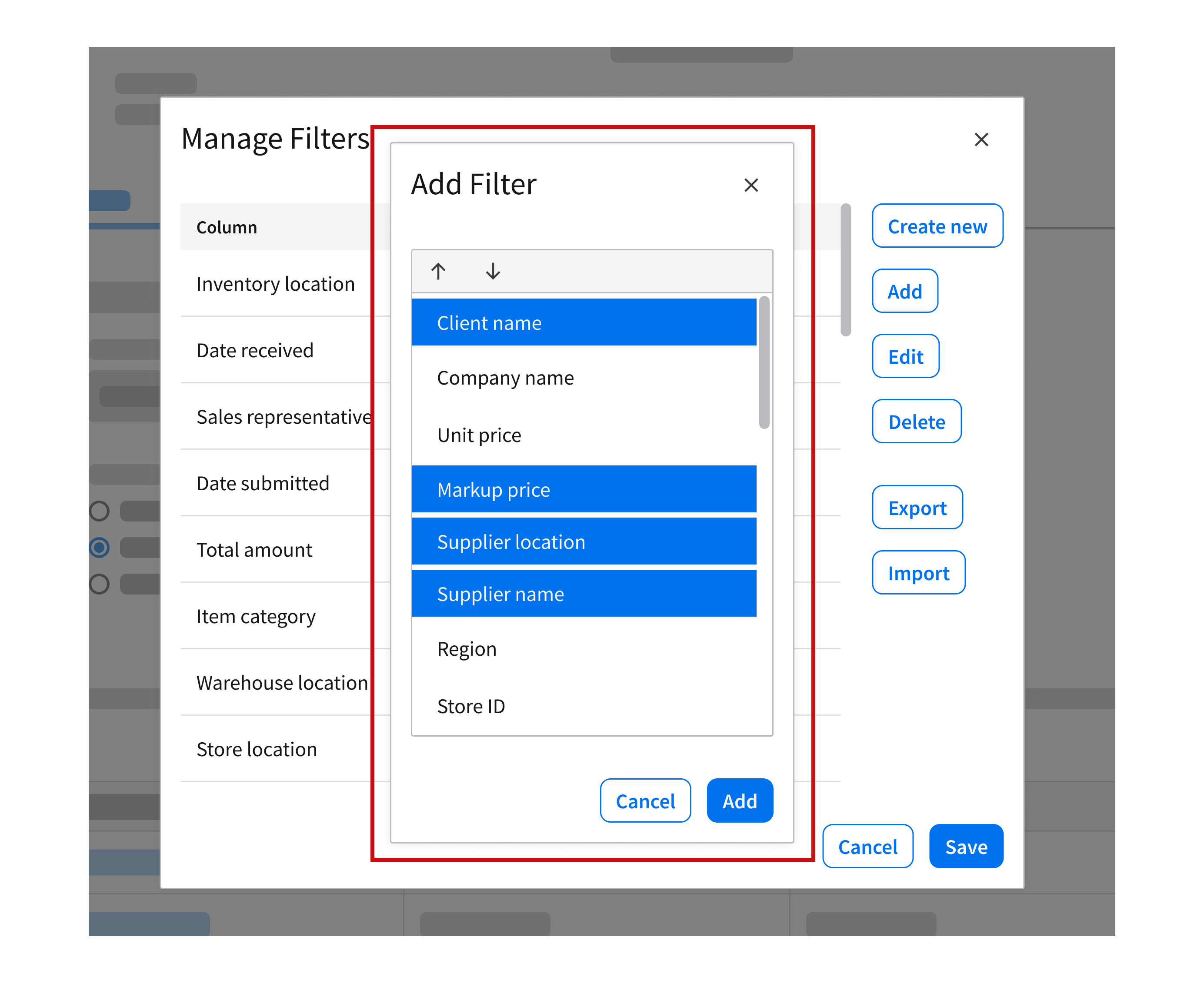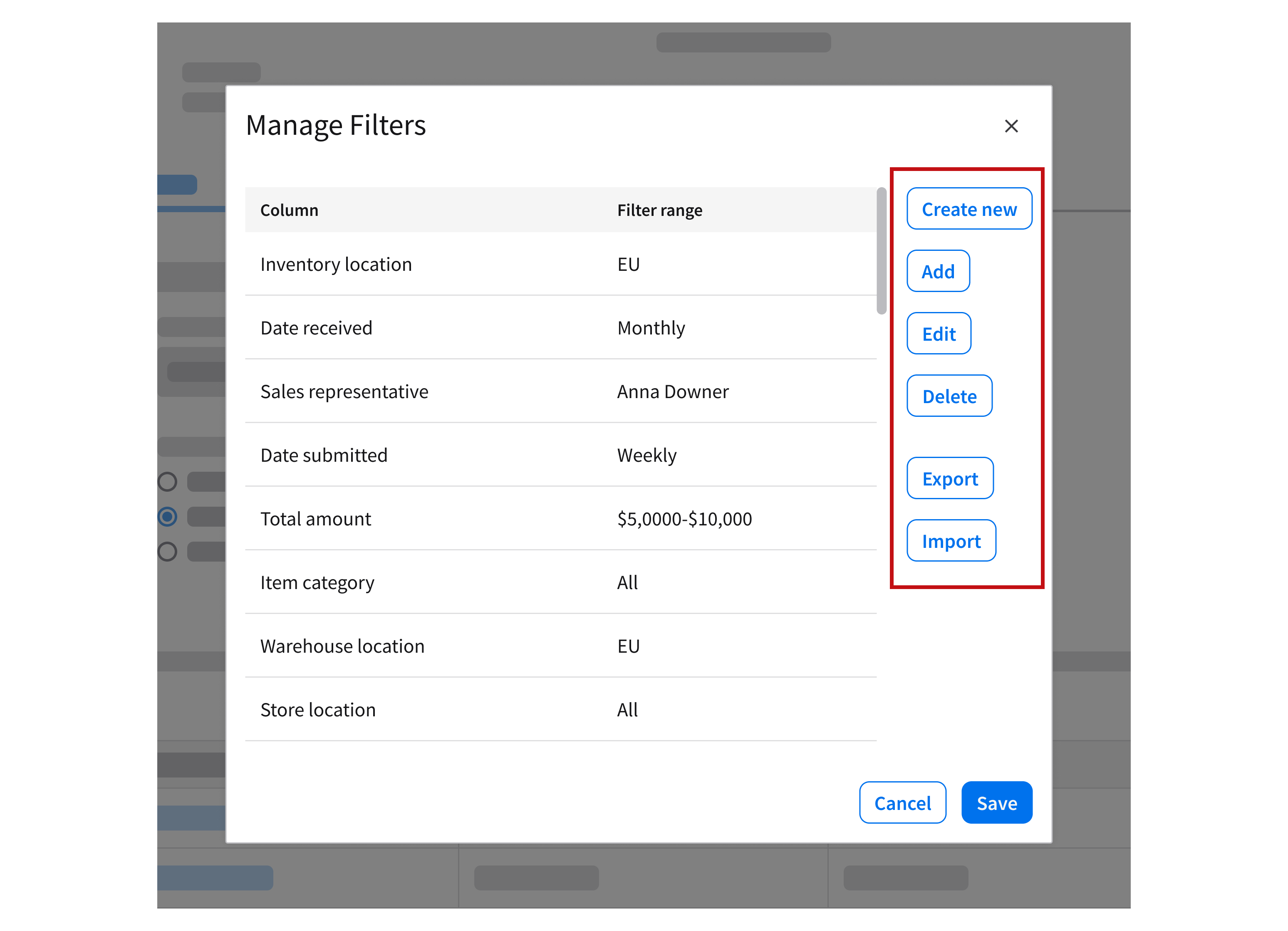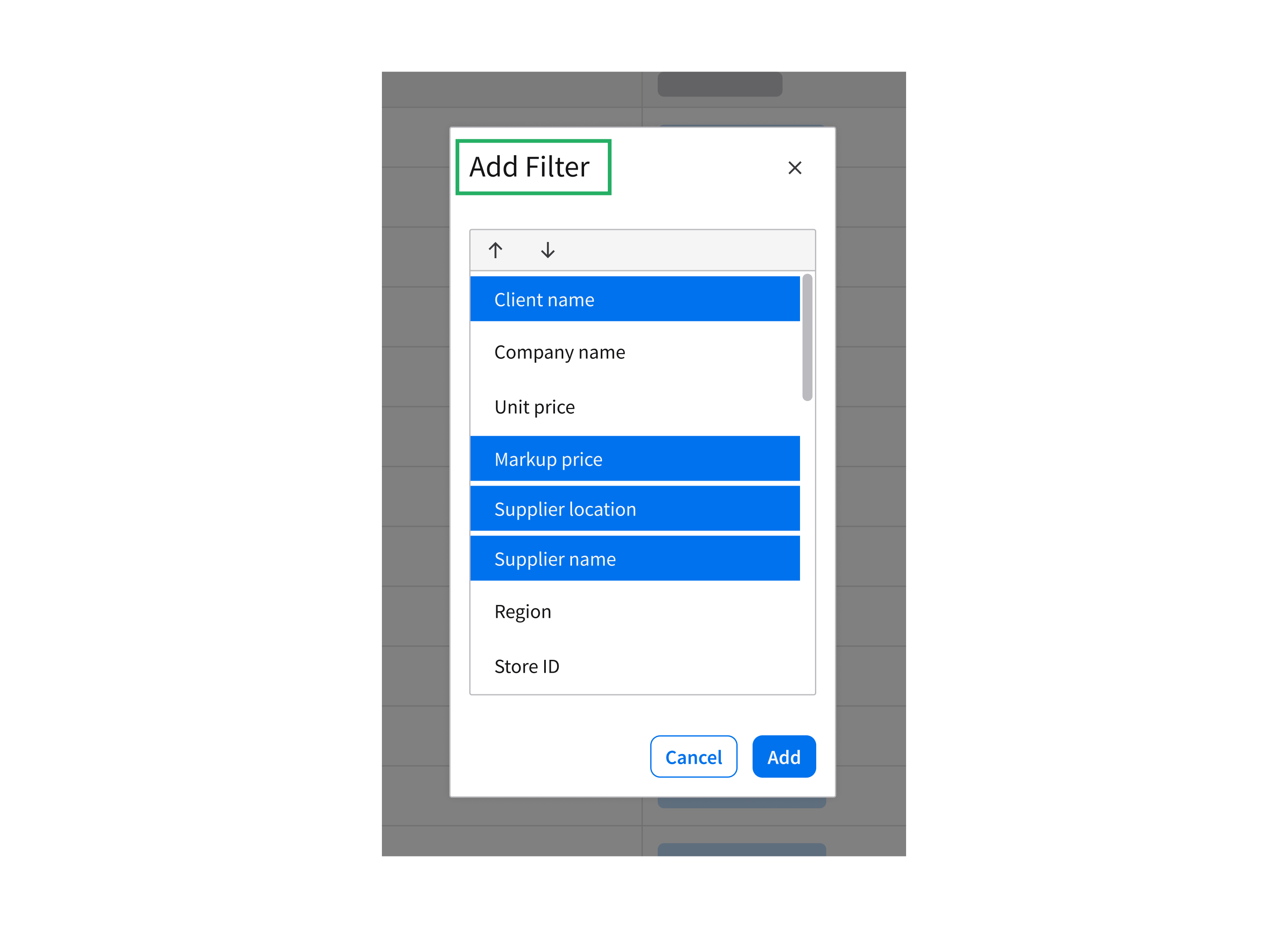 Filtering data grid values is an optional interaction. This allows the user to continue interacting with the underlying content while applying or adjusting filters. This example is using the popup component.