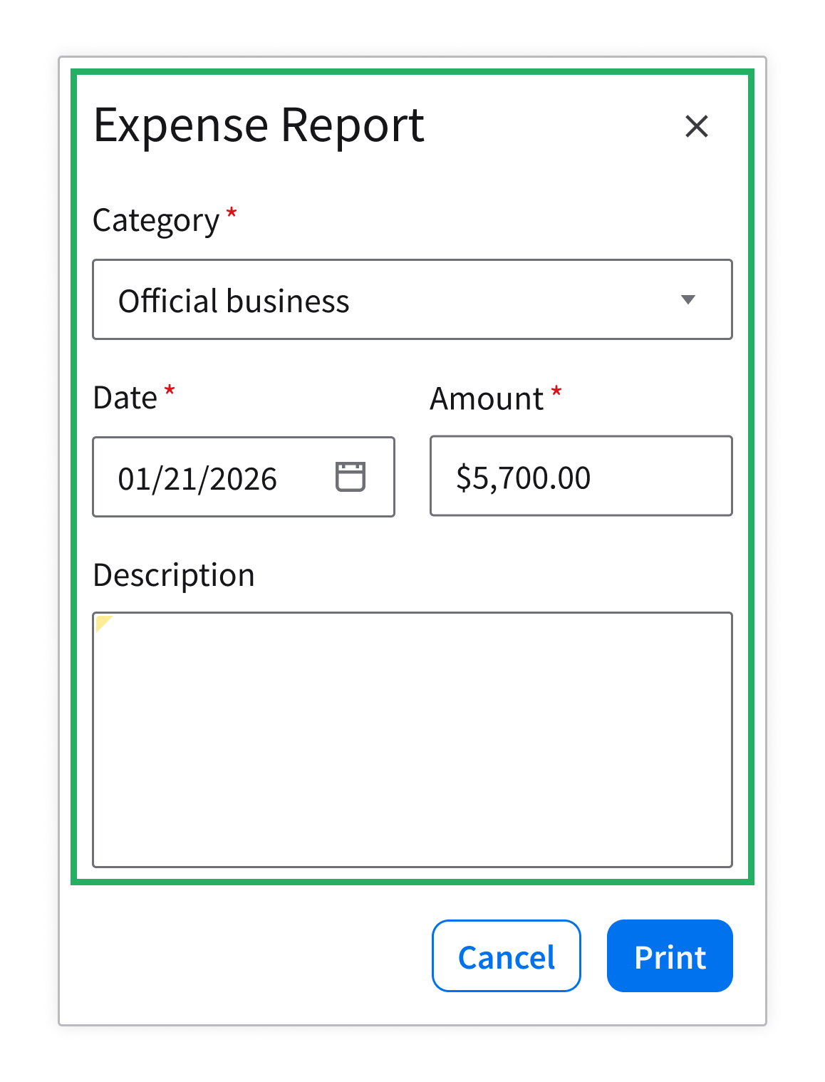 When a dialog opens, it immediately guides the user to the first action that they can take. A visible focus state helps users who utilize keyboard and assistive technology to begin interacting right away.