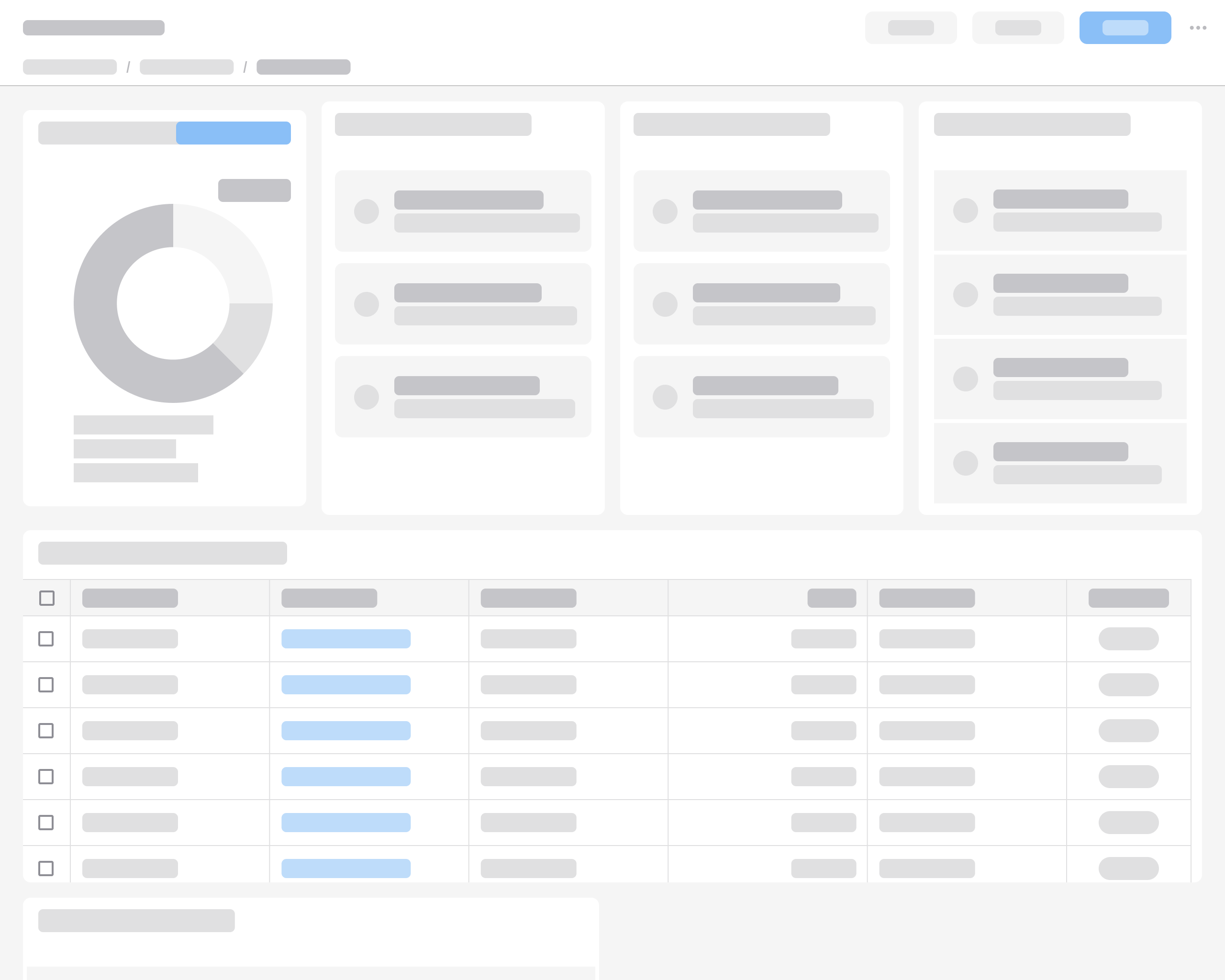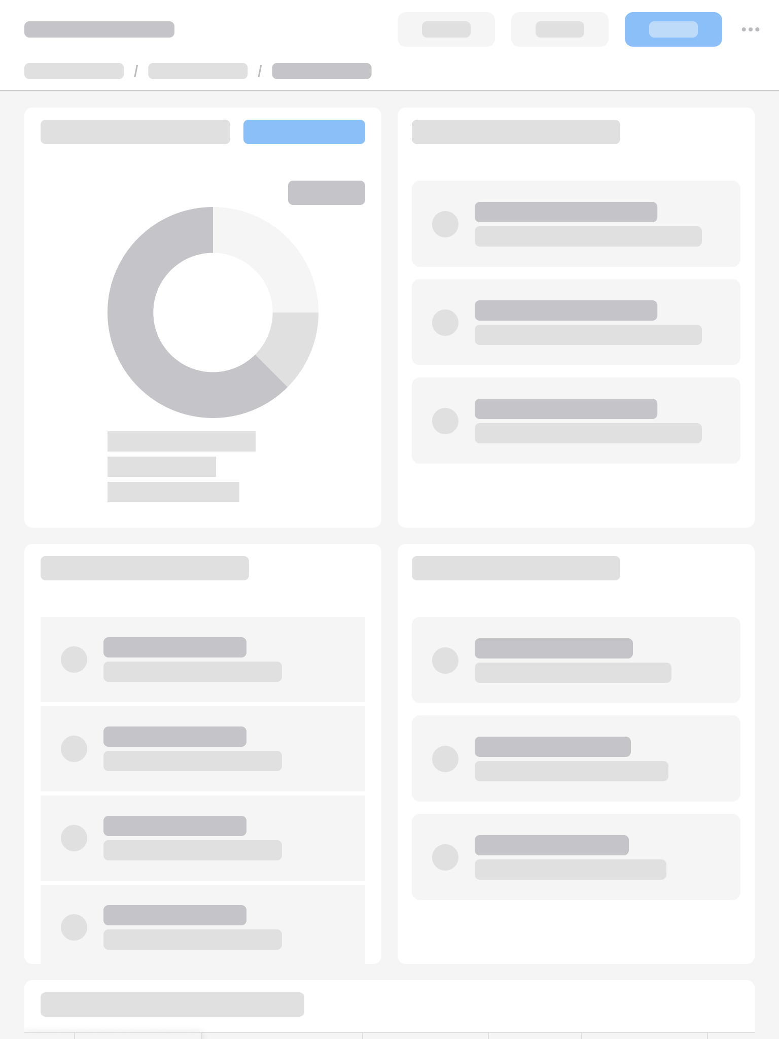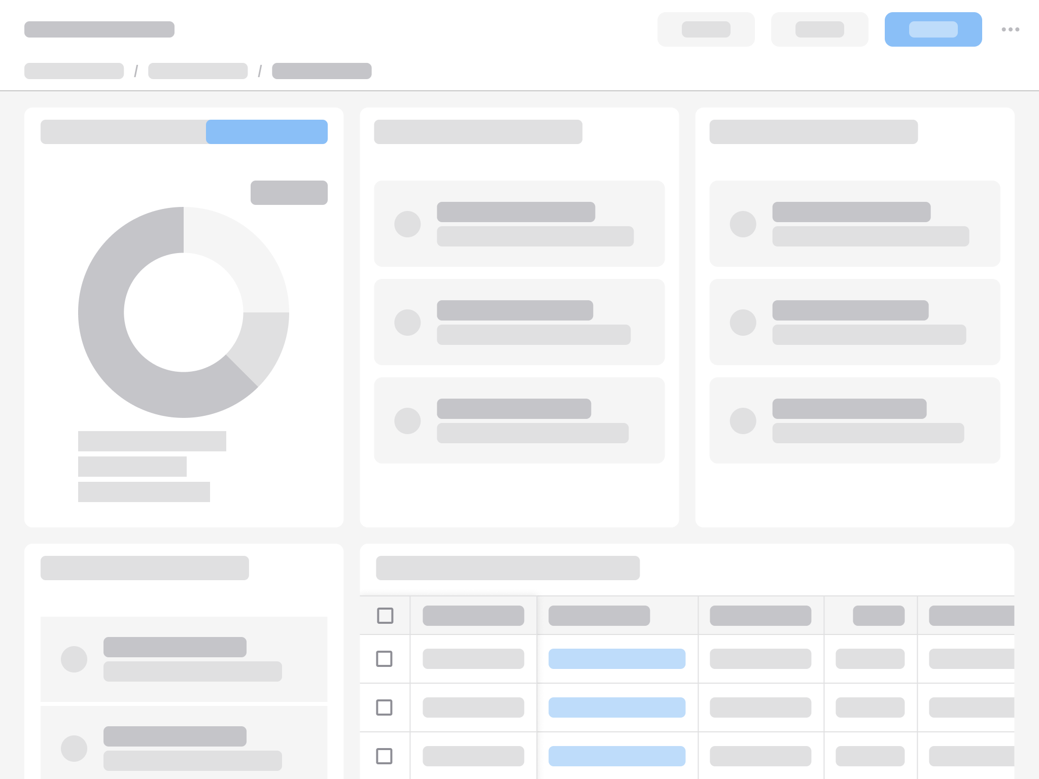 Presents supporting details—such as recent activity, alerts, charts, or quick links—that help users understand context, spot trends, and take action.