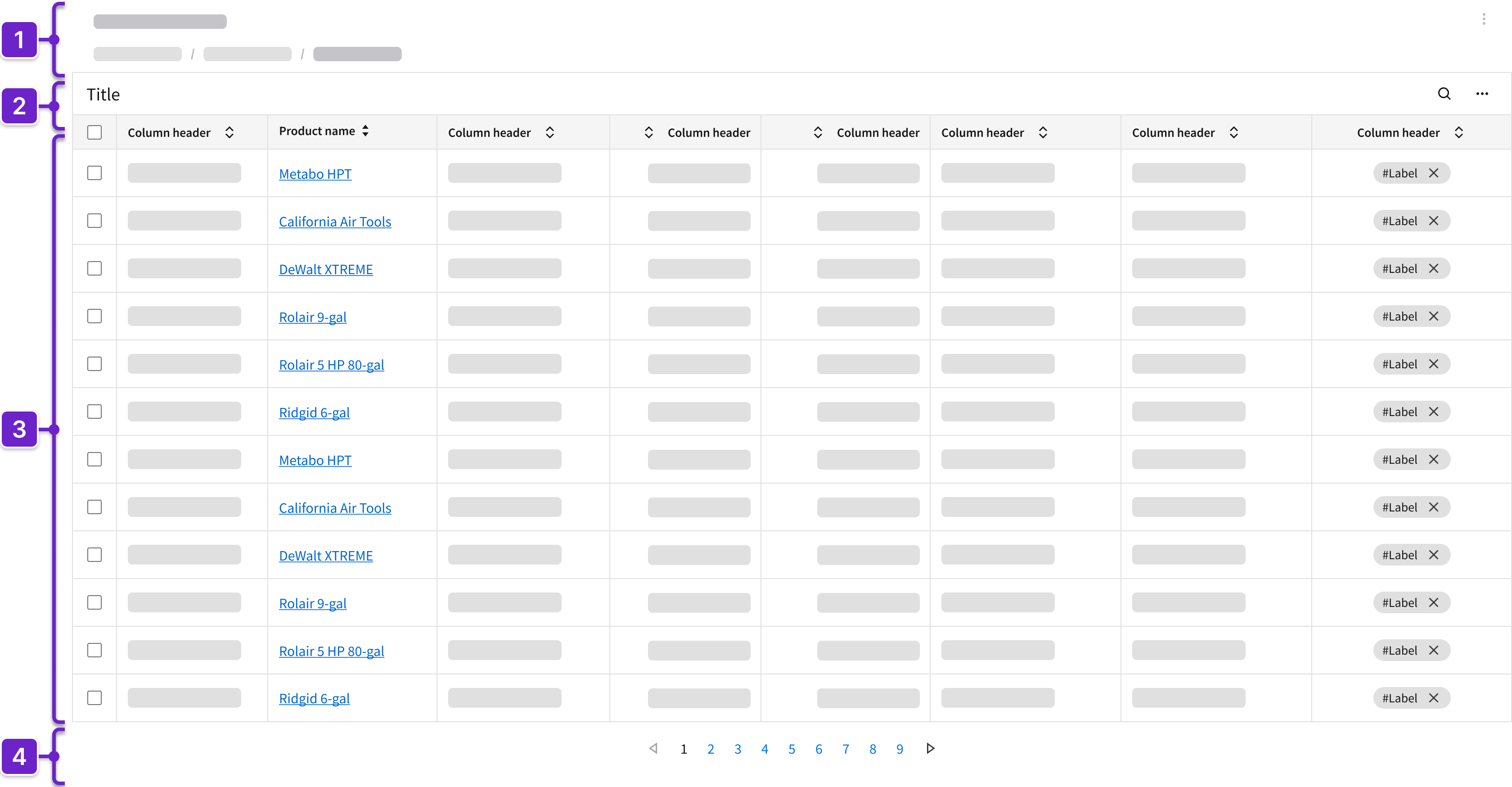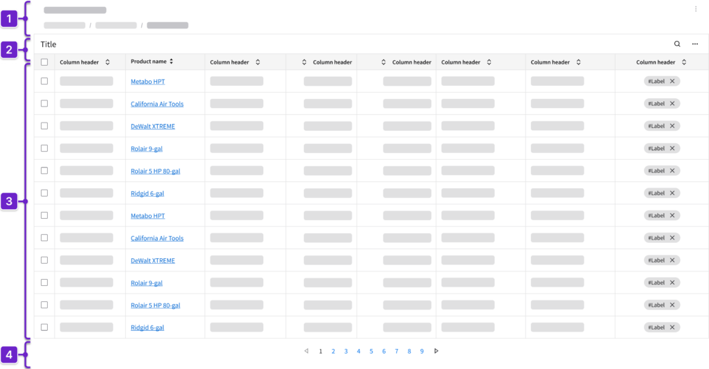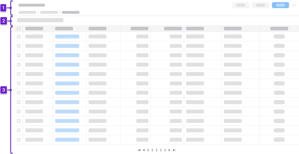 Tells the user where they are within the application and provides context about what’s on the page. This generally includes the page title and actions. It could also include a breadcrumb.