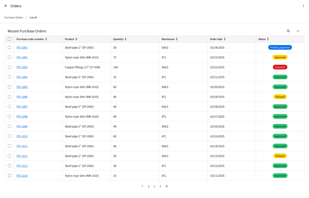 • Search, filter, and sort structured data, such as orders or transactions